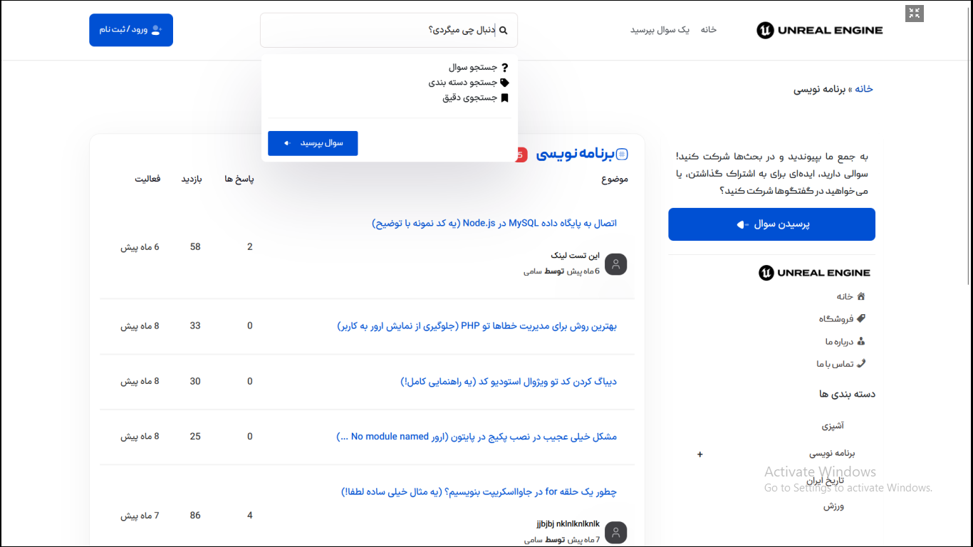 پروژه طراحی سایت پرسش و پاسخ